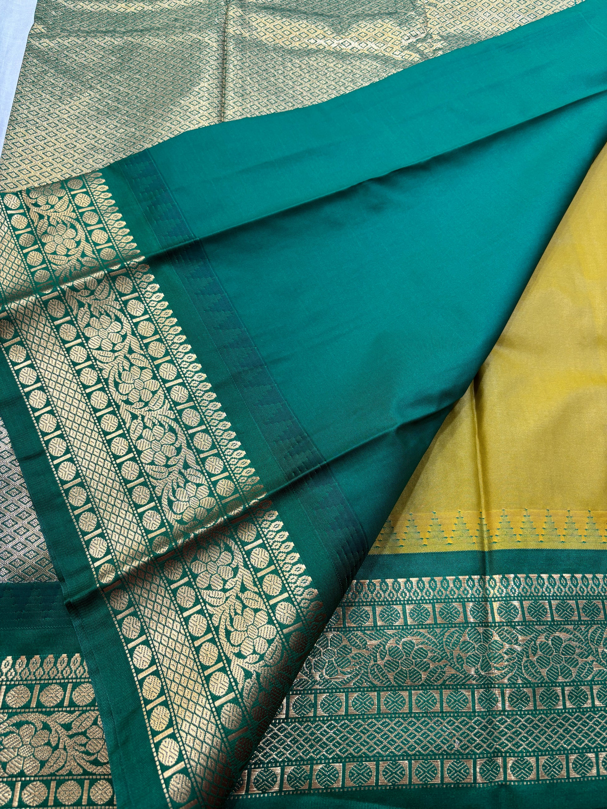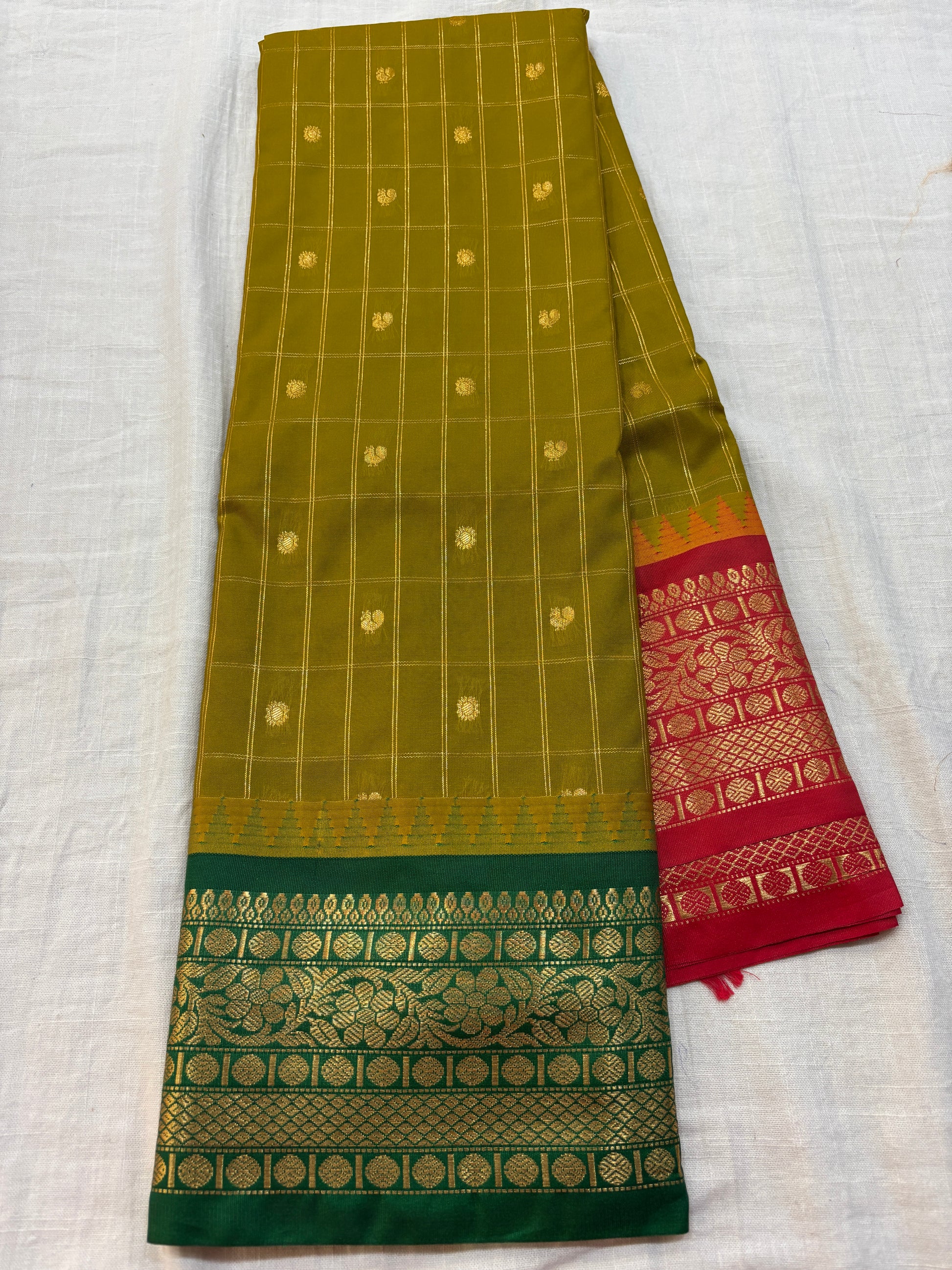 The Semi Gadwal Ganga Jamuna Borders feature a distinctive design characterized by traditional craftsmanship. The rich pallu offers a visually appealing drape, while the plain blouse with contrasting borders enhances versatility. This garment effectively combines cultural significance with contemporary style, making it suitable for various occasions.